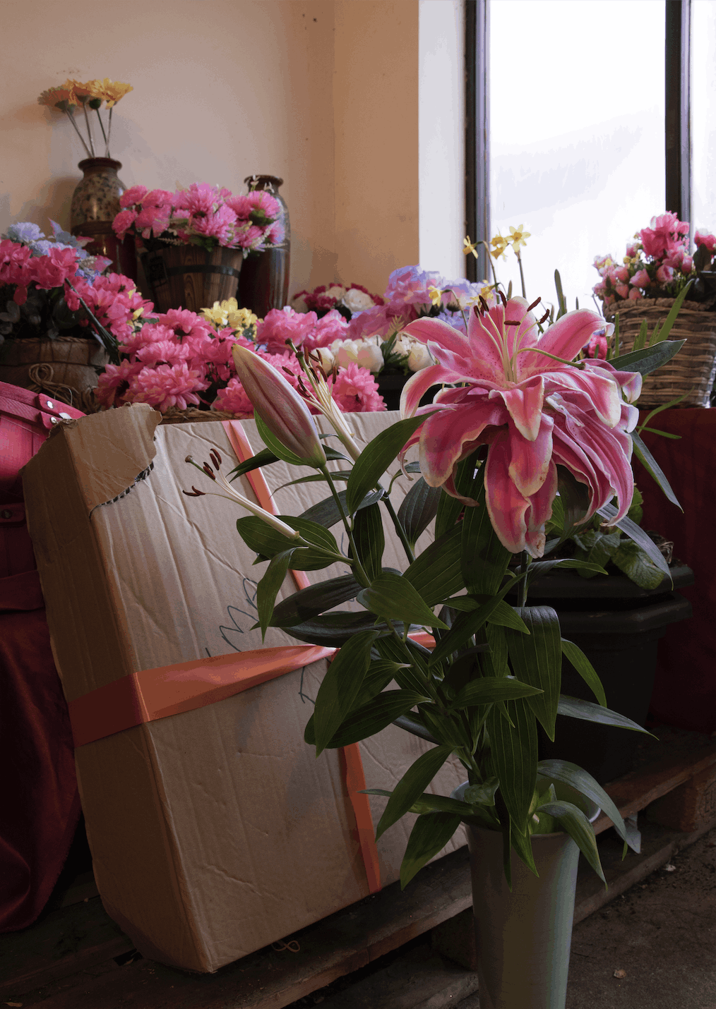 The artwork Creating heroes takes its toll is inspired by Erich Fromm's type of "marketing character". This photographic work depicts flowers, showing lilies for sale in a store. In his psychoanalysis of society, Fromm describes individuals who can achieve neither a self nor a sense of identity. They strive to flexibly meet external expectations by objectifying the individual. At the same time, they turn into objects themselves. However, the seductive appeal on the surface, designed to meet demand, comes at a price.