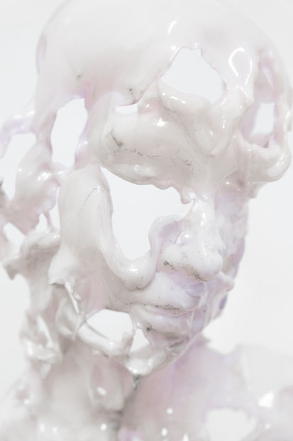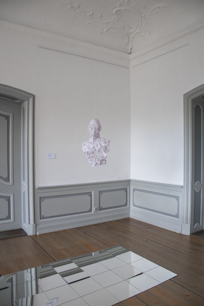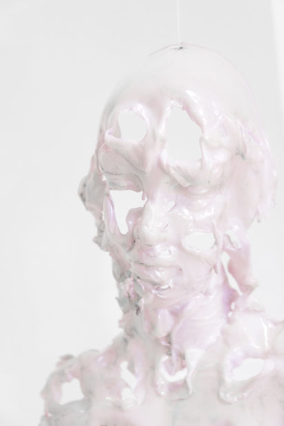 About reversible and indeterminate order transcends these attributes to give birth to a portrait of a queer persona as it merges and simultaneously dissolves. The mould is from the parents' clothing shop and symbolises the base of the artist's education.The melting process breaks up the dusty patina and not only makes temporality perceptible, but links the sculpture to the artist as such.